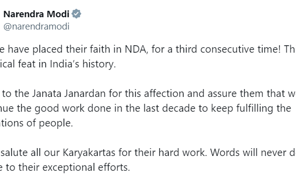 In a momentous declaration on social media, Prime Minister Narendra Modi heralded a historic triumph for the National Democratic Alliance…