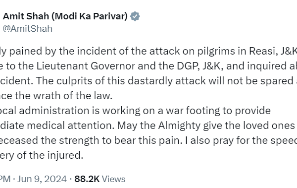 Union Minister Amit Shah expressed deep sorrow over the recent attack on pilgrims in Reasi, Jammu and Kashmir. The incident…