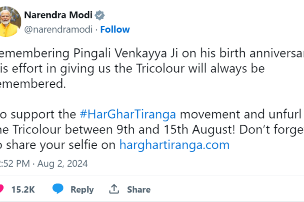 Prime Minister Narendra Modi has honored the memory of Pingali Venkayya on his birth anniversary, celebrating the man who designed…